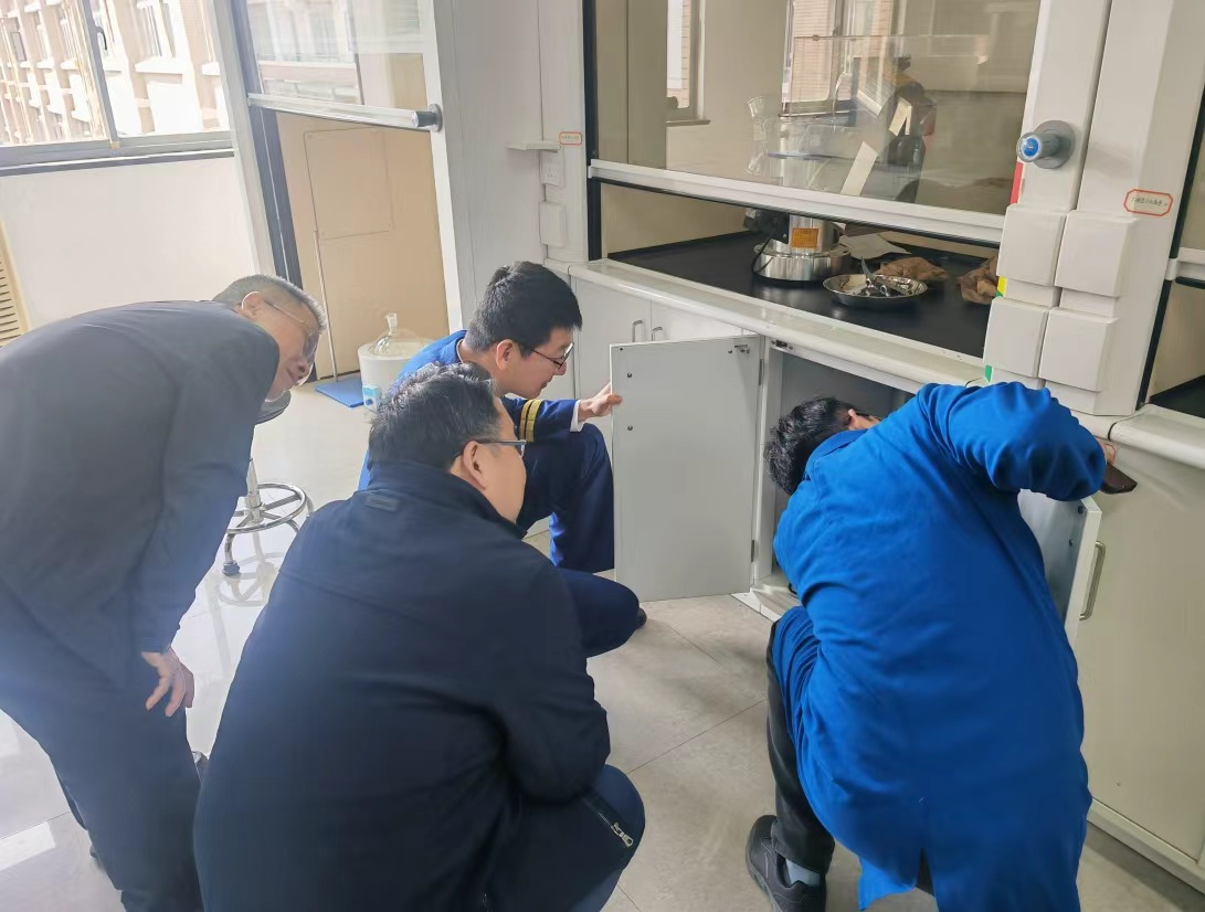 保卫部(处)部(处)长袁富良作学校安全管理工作汇报。专家组就实验室安全、消防安全、电气电路安全、食品安全、燃气安全、宿舍安全等进行实地检查,并查看工作台账。